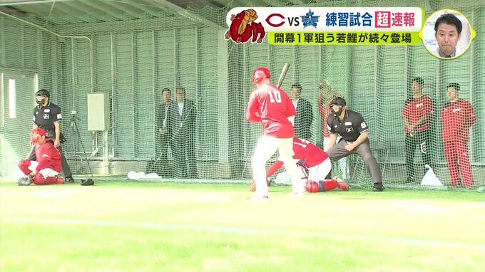 5年連続で務めていた開幕投手を 九里亜蓮 に譲り、同期としてくやしさも口にしていましたが、右ひじの手術明けとあって指揮官は飛ばしすぎないようにと配慮。途中、左肩の炎症で別メニュー調整中のレイノルズが打席に立つ中、きょうは63球。あらためて順調な回復ぶりを見せた背番号14、開幕ローテ入りを目指します。