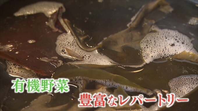 県産の有機野菜をふんだんに使い、調味料も体にやさしいものを選び、10種類を超えるレパートリーがあります。