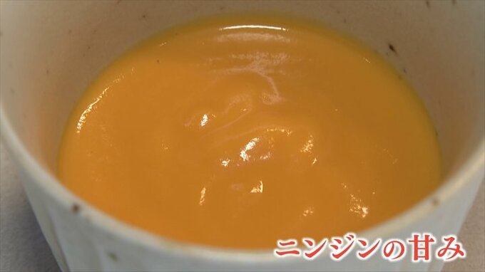 ニンジンのポタージュはニンジンの甘味が広がって野菜が苦手という方も飲みやすいし食べやすい。