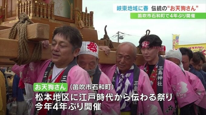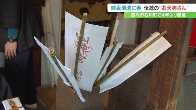 山神宮の「お天狗さん」は、笛吹市石和町の松本地区に江戸時代から伝わる伝統の祭りで、今年4年ぶりに行われました。