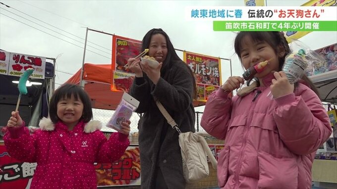 時折雨が降る中会場には親子連れなどが訪れ、4年ぶりの春祭りを楽しんでいました。