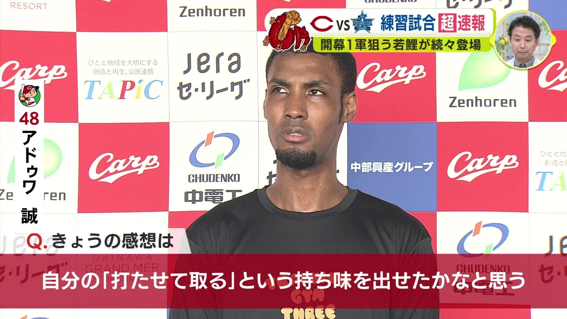 先発のプロ8年目、25歳のアドゥワは、その立ち上がり。DeNA先頭のドラフト1位・度会隆輝 をセカンドゴロに仕留めます。2アウト・1塁で迎えたのは、アドゥワと同年代にあたる4番・牧秀悟 。インサイドのストレートで見逃し三振を奪い、無失点のスタートを切ります。