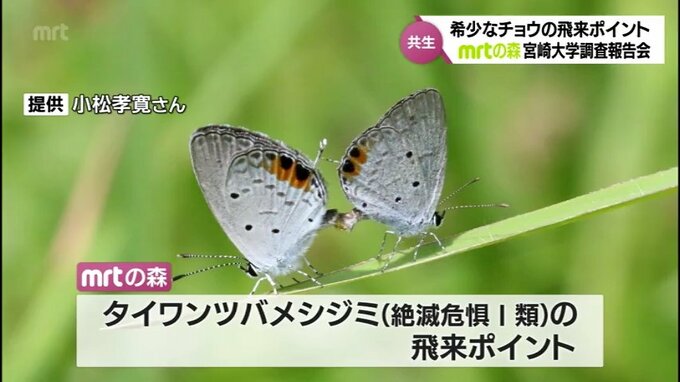 MRTは宮崎市で関係団体と協力して環境に配慮した森づくりを行っています。その森で自然とチョウの共生について研究している宮崎大学の調査研究チームによる報告会が開かれました。MRTは豊かな自然を後世に残そうと…