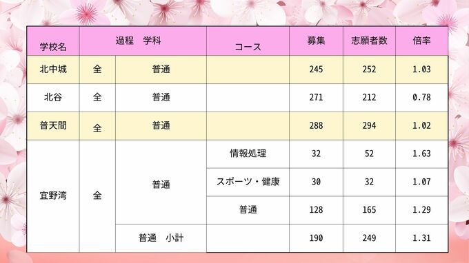 【全校掲載】沖縄県県立高校入試2024 最終志願倍率、全日制は0.95倍 具志川商業や首里高校が高倍率に 各学校の出願状況は 琉球放送 2024年2月22日(木) 11:00 国内 北中城・北谷・普天間・宜野湾・西原・陽明・浦添