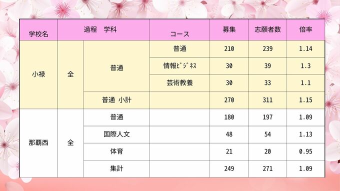【全校掲載】沖縄県県立高校入試2024 最終志願倍率、全日制は0.95倍 具志川商業や首里高校が高倍率に 各学校の出願状況は 琉球放送 2024年2月22日(木) 11:00 国内 小禄・那覇西・豊見城・豊見城南・開邦・南風原