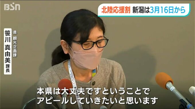 【県観光企画課 笹川真由美 課長】「風評被害でキャンセルが出たりしたので、本県は大丈夫ですとアピールしていきたいと思います。全国のお客様から安心して本県においでいただいて新潟の観光地を堪能していただきたい」