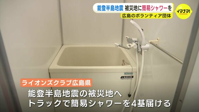 民間のボランティア団体が、能登半島地震の被災地支援のため、簡易シャワーを送りました。ライオンズクラブ広島県が、被災地へ届けるのは、高さ2メートル幅1・5メートルの簡易シャワー4基です。メンバーらは広島市…