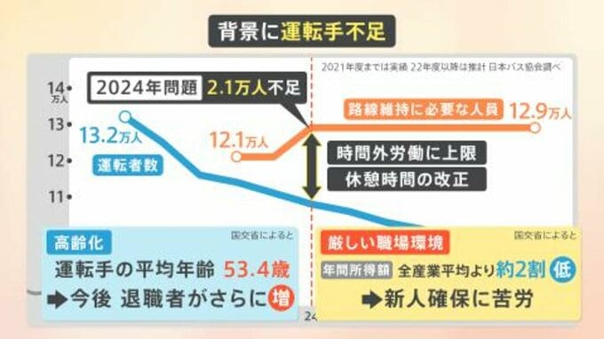 「2024年問題」、運転手が不足しているという状況も明らかになってきました。