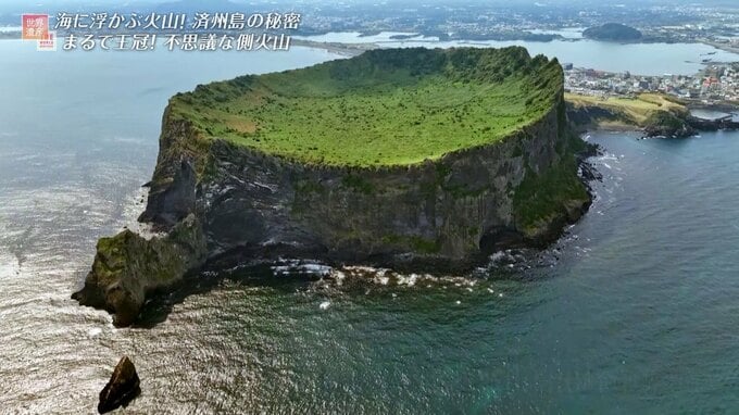 沿岸部にある火山で、まるで海に浮かぶ巨大な王冠のような形をしています。また地底の溶岩洞窟群も壮大で、撮影した「ヨンチョン洞窟」は全長3.4キロもある巨大なもの。内部には長さ800メートルもある地底湖があり、アドベンチャー感満載でした。