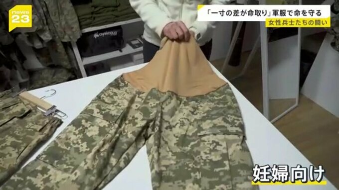 イリーナさんたちのプロジェクト「Arm Women Now」では、これまでに6500人の女性に軍服を提供してきました。また、「妊娠しても軍の活動を続けたい」そんなニーズに応え、こんな軍服もあるといいます。