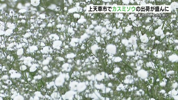 この春の卒業式や入学式に向け、熊本県上天草市ではカスミソウの出荷が盛んに行われています。成田誠(なりた まこと)さんのビニールハウスでは、日が当たると花が咲き始めることから朝の早い時間に収穫が行われ…