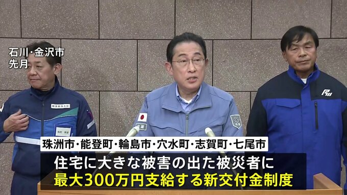 政府が従来の支援金とは別に支給する最大300万円の交付金制度の全容が判明しました。石川県内の対象地域のうち、8割程度の世帯をカバーできるとしています。政府は、被災者生活再建支援法に基づく最大300万円の支…
