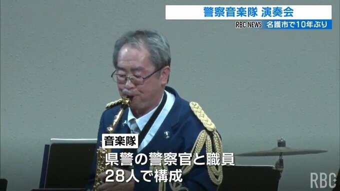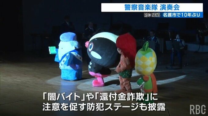 音楽隊は県警の警察官と職員の28人で構成され「士官候補生」などおよそ10曲が演奏されたほか、「闇バイト」や「還付金詐欺」に注意を促す防犯ステージも披露されました。