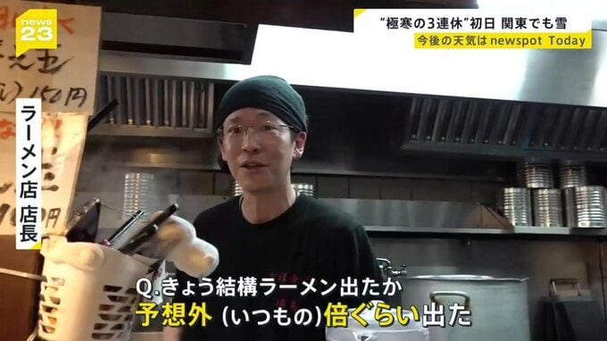 東京・吉祥寺にあるラーメン店では、寒さも相まって客足が増え、急遽なくなりそうな食材を買い足す女性従業員の姿がありました。