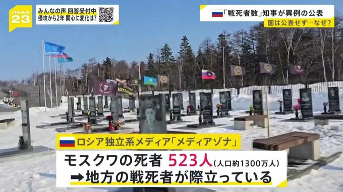 その一方で、ロシアがひた隠しにしてきたのが、兵士の損失です。2022年以降、死者に関する情報は一切発表していません。ただ、地方に行くと、ロシア側の損失も拡大していることがうかがえます。