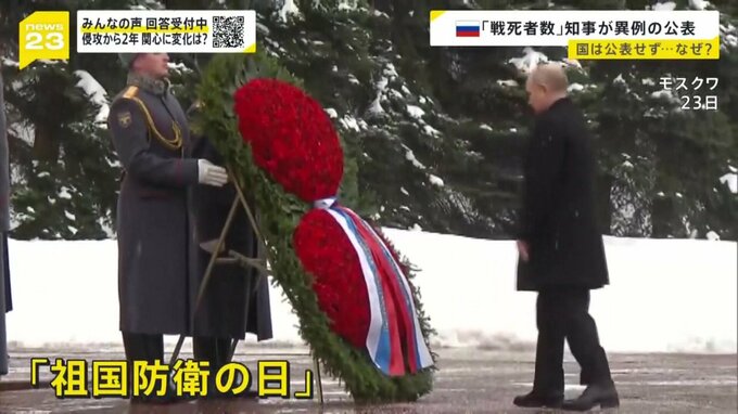 プーチン大統領はロシアの祝日「祖国防衛の日」にあたる23日、無名戦士の墓に献花を行いました。
