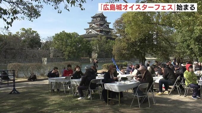 カキを中心にした冬の味覚を集めた「広島城オイスターフェス2024」が24日、始まりました。開会式では実行委員長を務める広島商工会議所の 池田晃治 会頭が「冬の味覚を堪能して下さい」とあいさつし、鏡開きをして…