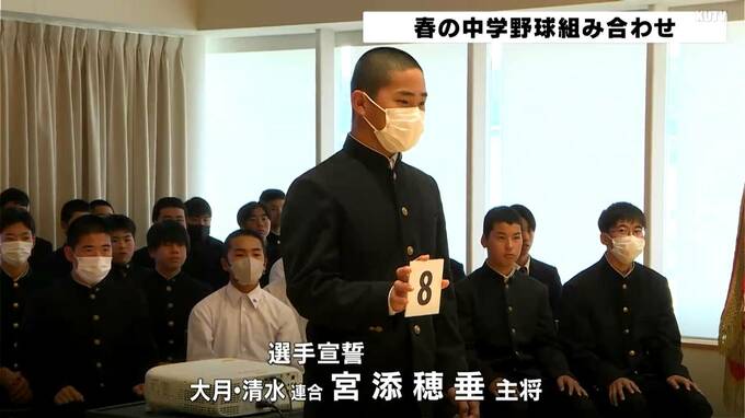 この大会は、県中学校体育連盟やテレビ高知などが毎年春に開催していて、76回目となる今年は41校・26チームが出場します。24日の組み合わせ抽せん会では、各チームのキャプテンがくじを引き、対戦相手が決定しました。