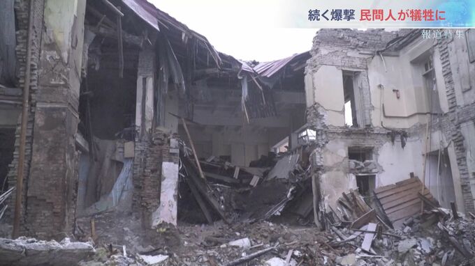 「ここは学校なんですけど、停電などの時に人々が集まって食料を得たり、あるいは暖を取ったりできるようなコミュニティセンターのような役割を果たしていたそうです。ここに昨日は、一人の職員が泊まり込みで作業していたところに、爆弾が落ちて、がれきの下から今日遺体が発見されたそうです」