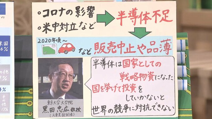 東京大学大学院の黒田忠広教授(元東芝研究者)は、「半導体は国家としての戦略物資になった。国を挙げて投資をしていかないと世界の競争に対抗できない」と指摘します。