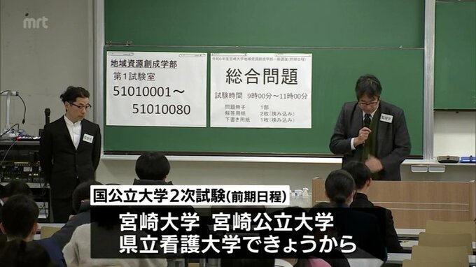 国公立大学の2次試験の前期日程が25日から始まり、宮崎県内でも多くの受験生が試験に臨みました。県内では、宮崎大学と宮崎公立大学、それに、県立看護大学で25日から前期日程の試験がスタートしました。このうち…