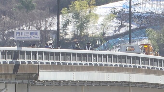 きょう午前6時半ごろ、富士川町と市川三郷町にかかる富士川大橋で、軽乗用車など5台が絡む事故があり、20代と60代の2人が病院に運ばれました。