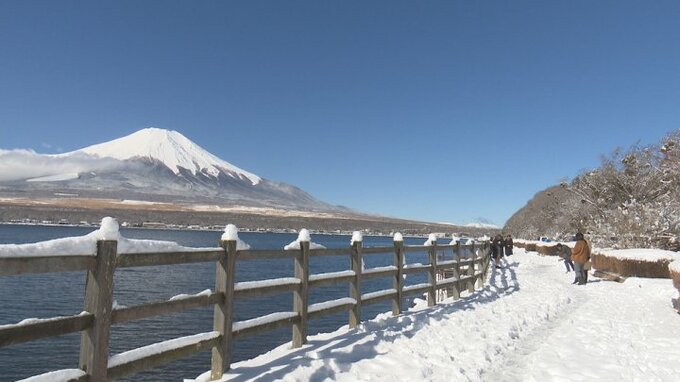 甲府地方気象台によりますと、県内はきのう広い範囲で雪が降り、各地の積雪は山中湖で17cm、河口湖で7cmなどとなりました。