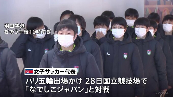 5年ぶりの北朝鮮代表選手の来日です。パリオリンピック出場をかけ、あさって、国立競技場で「なでしこジャパン」と対戦する北朝鮮の女子サッカー代表選手らがきのう夜、羽田空港に到着しました。朝鮮総連の関係者…