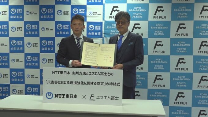 災害などで通信障害が発生した時のラジオでの情報発信で連携する協定をNTT東日本山梨支店とエフエム富士が結びました。NTT東日本山梨支店とエフエム富士が結んだ今回の連携協定では、災害により携帯電話などの通信…