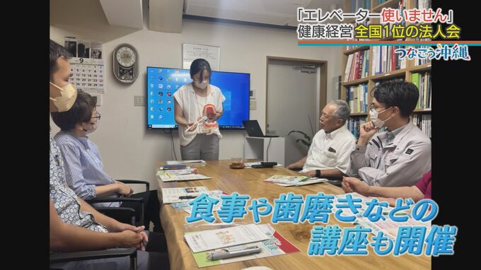 この他にも講師を招いて食事や歯磨きなど、健康に関する講座を定期的に開いています。この日はストレッチ講座が行われました。