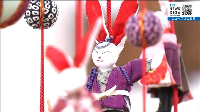 使い古した布を使って手作りした華やかな人形が飾られています。3月3日の桃の節句を前につるし雛の展示会が宮城県登米市の道の駅で開かれています。