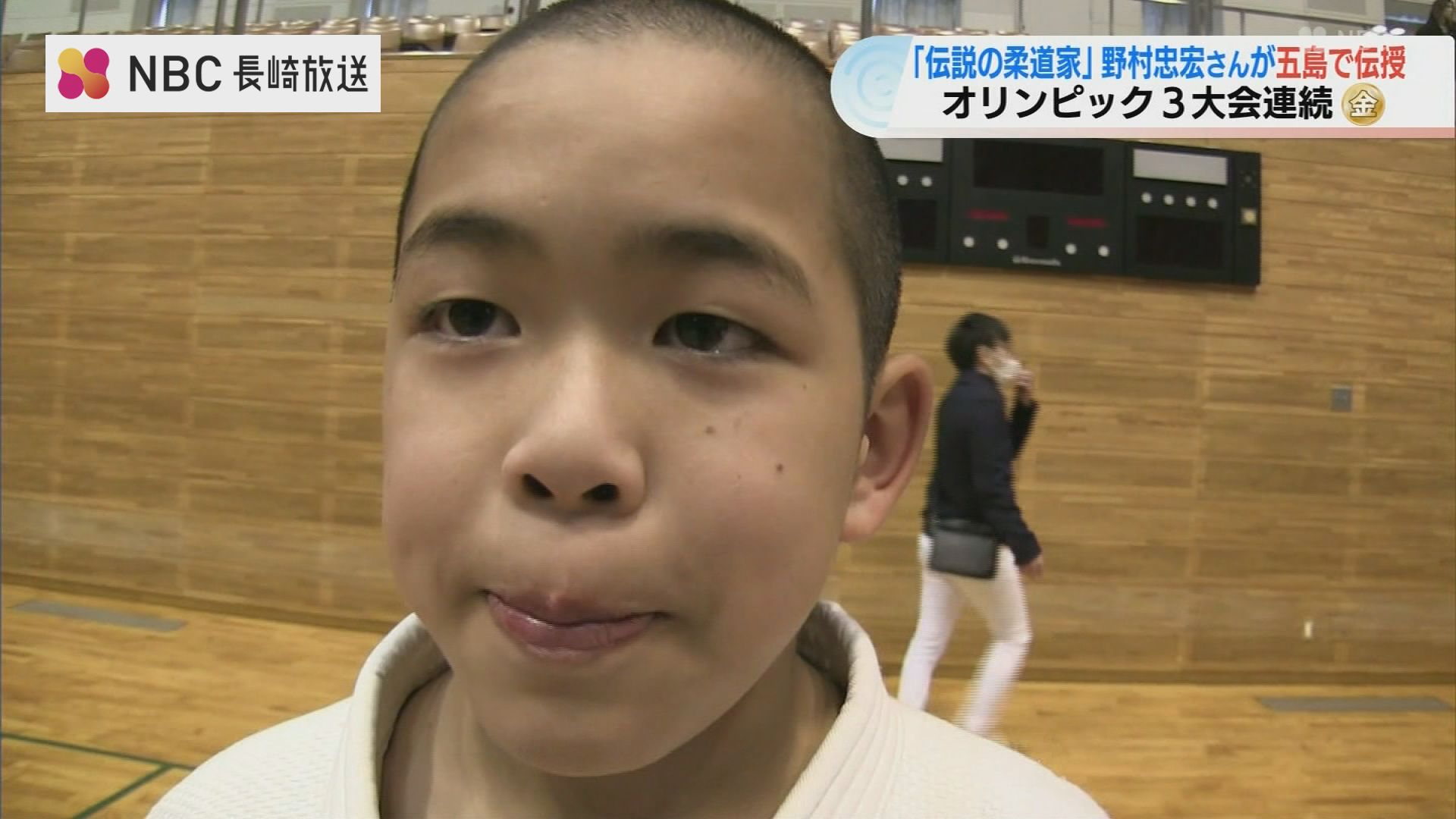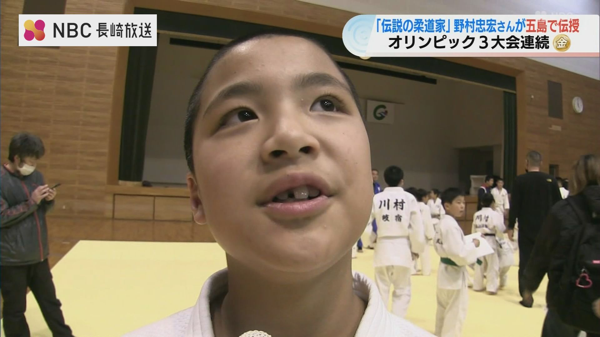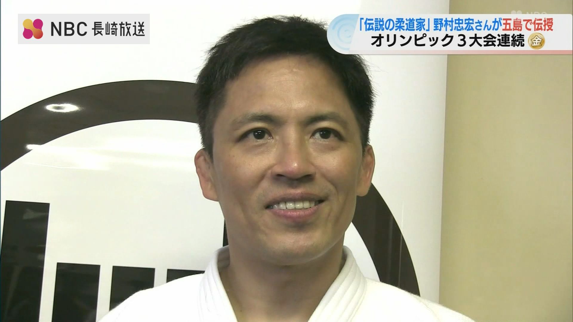 オリンピック3大会連続金メダリストの野村忠宏さんが講師となり、長崎県五島市で開かれた柔道教室には、小中学生や高校生、あわせて100人が参加しました。