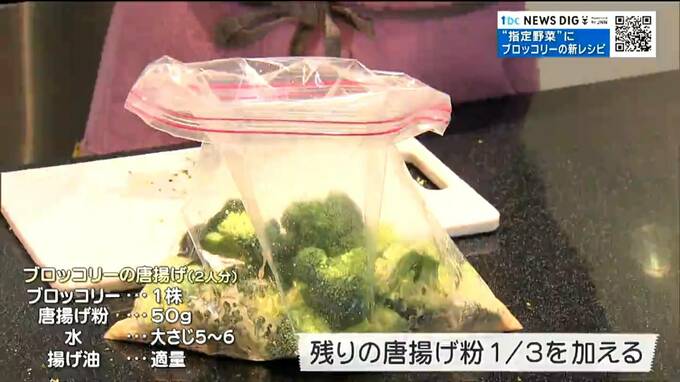「(から揚げ粉を)後入れすることで、粉がブロッコリーの表面全体に混ざりやすくなりますので、衣がコーティングされやすくなります」