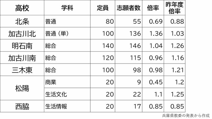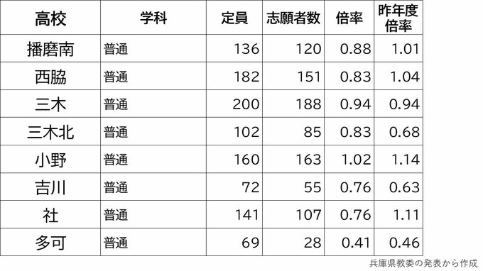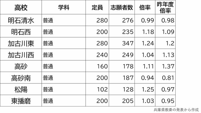 【出願締切】兵庫県公立高校入試2024 志願倍率は神戸1.17倍 芦屋1.56倍 兵庫1.49倍 加古川東1.24倍(令和6年度高校受験、全日制全校掲載) 毎日放送 2024年2月28日(水) 17:15 国内 2月26日まで 学校別の倍率一覧 加古川東1.24倍 社0.76倍