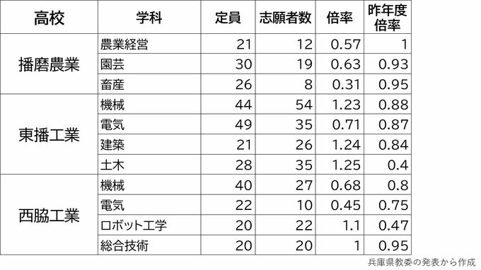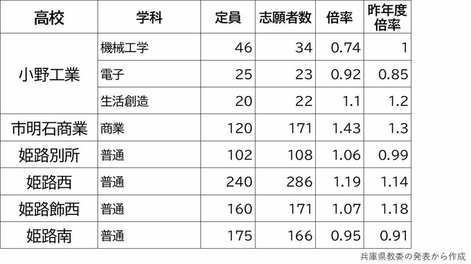 【出願締切】兵庫県公立高校入試2024 志願倍率は神戸1.17倍 芦屋1.56倍 兵庫1.49倍 加古川東1.24倍(令和6年度高校受験、全日制全校掲載) 毎日放送 2024年2月28日(水) 17:15 国内 2月26日まで 学校別の倍率一覧 姫路西1.19倍 龍野1.02倍