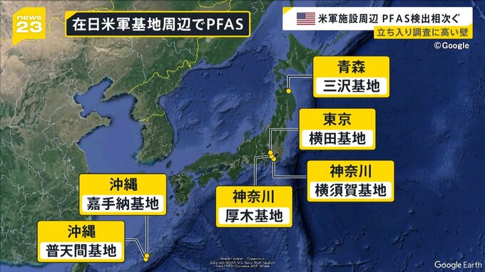 「PFAS」をめぐっては、東京の横田基地周辺や沖縄や神奈川の在日米軍基地周辺などで高濃度の値が検出されています。