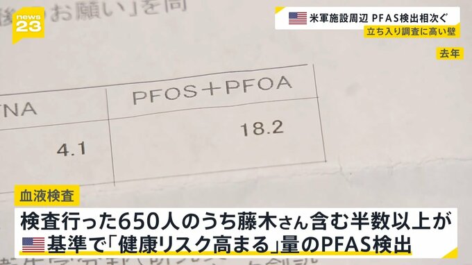検査を行った650人のうち、藤木さんを含む半数以上がアメリカ科学・工学・医学アカデミーが定めた基準で「健康リスクが高まる」とされる量のPFASが検出されました。