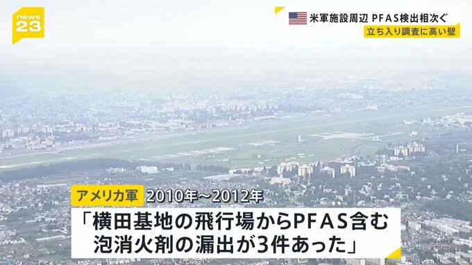 アメリカ軍は、2010年から2012年の間にPFASを含む泡消火剤の漏出が3件あったことを認めています。ただ、基地の外にPFASが漏出することはなかったとしているのです。