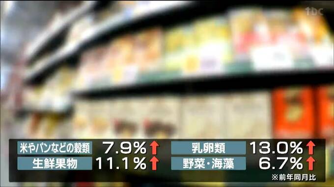 特に米やパンなどの穀類は7.9%上昇しているほか、牛乳や卵に加え野菜や果物などの価格も高止まりの状態が続いているということです。