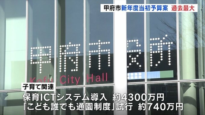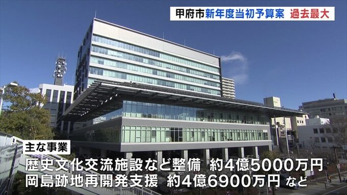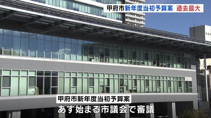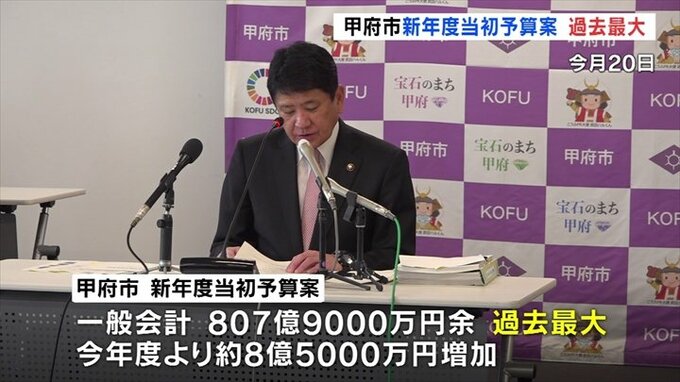 甲府市の新年度当初予算案は一般会計の総額で807億9000万円余りで、今年度より8億5000万円ほど増加し、過去最大となりました。