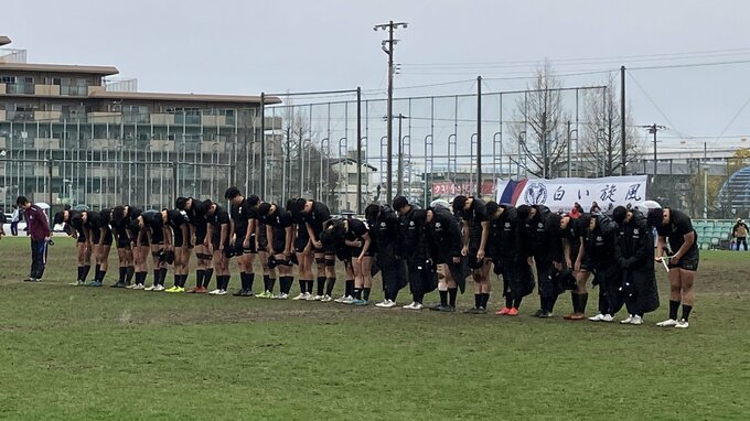サイドの変わった後半、フレッシュな選手を次々と投入して、反撃を試みる御所実。10分すぎからは、敵陣22m以内に何度も攻め込みます。しかし焦りからか、ゲームの起点となるスクラムやラインアウトで、大事なところでミスがでて、なかなか得点につなげることができません。竹田監督は、「経験不足から、追い込まれた時やペナルティーをとられたときに、レフリーや周囲としっかりコミュニケーションをとって修正することができなかった」と振り返りました。