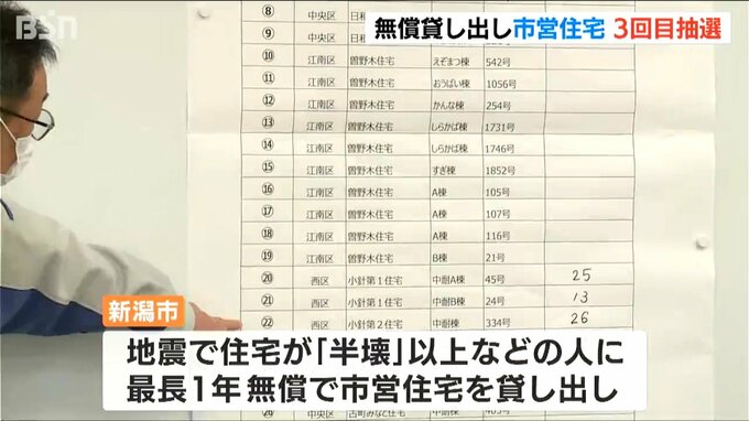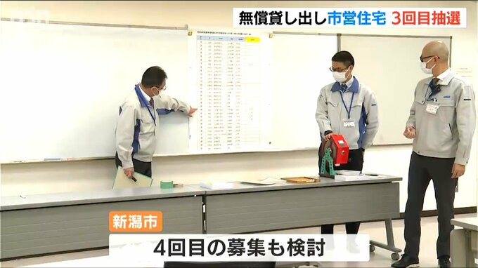 能登半島地震で住宅に被害を受けた人向けに、新潟市が無償で貸し出している市営住宅の抽選が行われました。