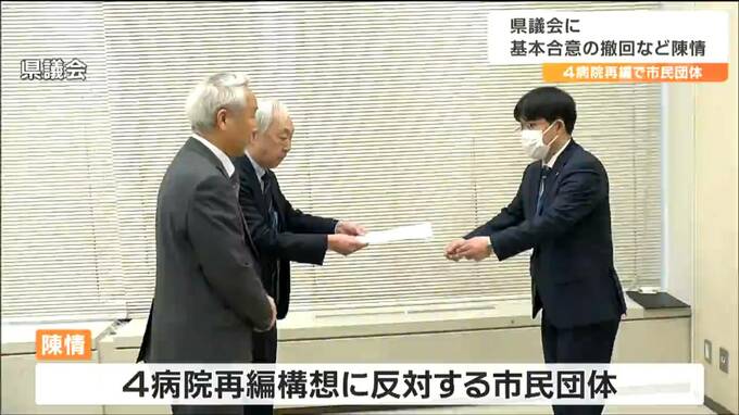 宮城県が進める仙台医療圏の4病院再編構想について、市民団体が27日、県議会に対し基本合意の撤回などを求めて陳情しました。