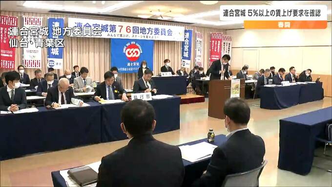 春闘に向け、宮城県内最大の労働団体、連合宮城が27日会合を開き、物価高や景気回復を背景に5%以上の賃上げなどを要求する方針を示しました。