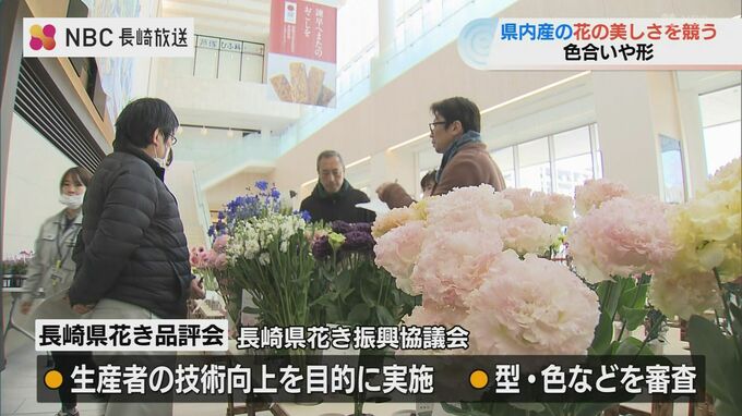 長崎県内で生産された花の美しさを審査する「長崎県花き品評会」が27日、長崎県諫早市で開かれました。