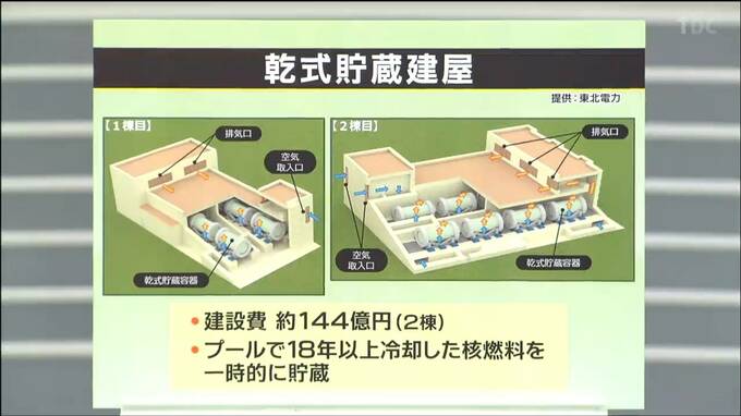この施設に移されるのはプールで18年以上冷却した核燃料で、東北電力は、あくまで敷地外の再処理施設に搬出するまでの一時的な貯蔵場所として位置付けていると説明しています。