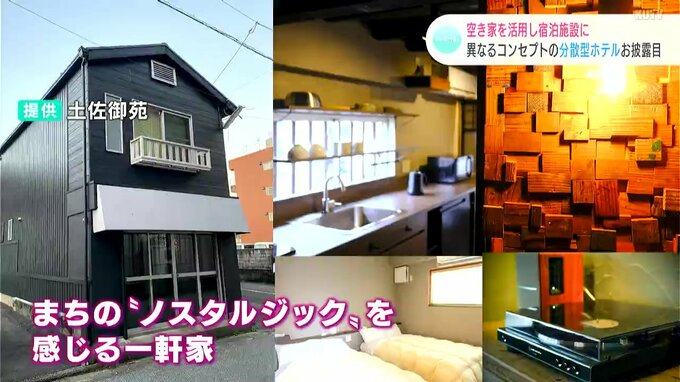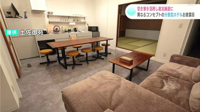 高知市の旅館土佐御苑が3月から正式にオープンさせるのは、分散型の宿泊施設「STAY UWU」です。コロナ禍を経て小規模グループでの旅行や、他の宿泊客を気にせずに利用したいといったニーズが高まったことを受け、おととし11月から企画を進めてきました。土佐御苑から徒歩10分以内の高知市中心街の空き家などを活用し、5つのコンセプトに沿った一棟貸しの施設が整備されています。