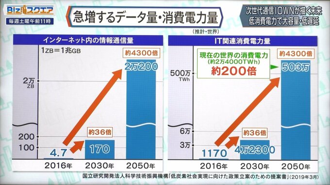「IOWN」を発表したのは2019年の5月。遡って2016年ぐらいから、だんだんと予見できた。昔に比べたらその映像を見たり、送るのが顕著になってきた。そうなると、処理するためのネットワークの装置やパソコンも含めて使うエネルギーがまた増えてしまうということになる。