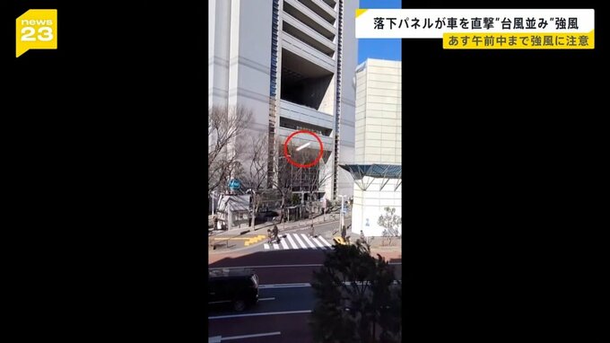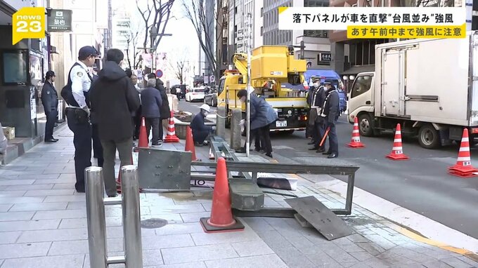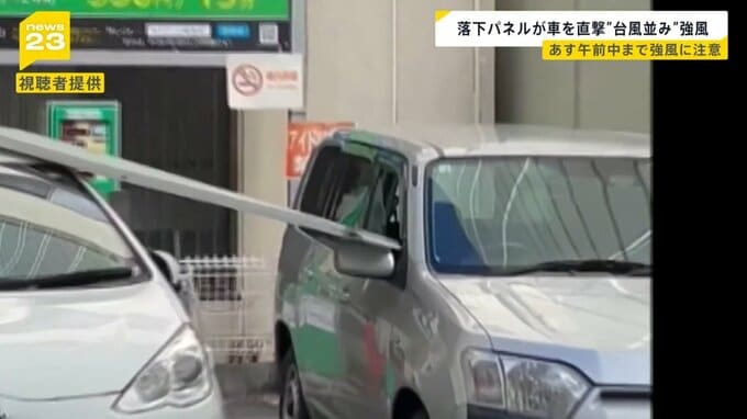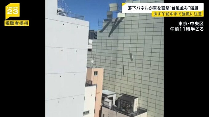 中央区では、落下したパネルが車を直撃。窓ガラスが割れてしまいました。