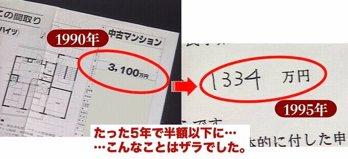 バブル崩壊のしわ寄せ一番手は住宅ローンでした。好景気時に高価格・高金利で買った不動産は、たちまち担保割れに見舞われました。約3000万円で買った3DKのマンションが、半額以下に落ちるなんて当たり前。売っても残債が残るばかりでした。